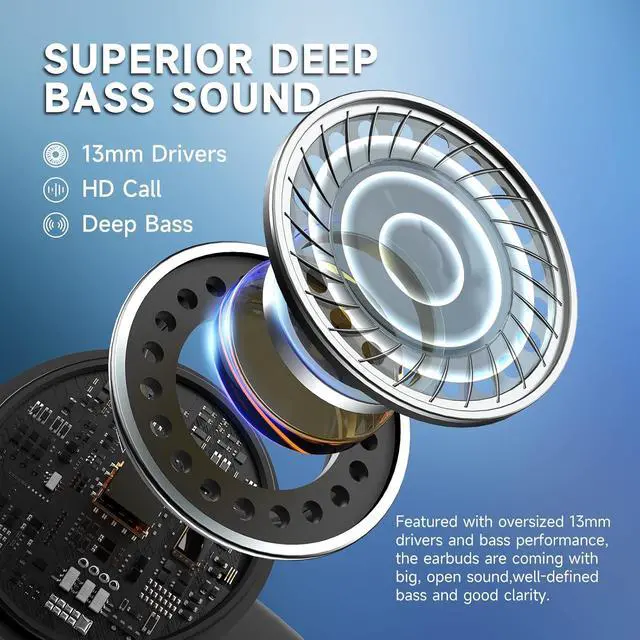 [Advanced Bluetooth Technology] Our earbuds adopt Bluetooth 5.3 technology, which greatly improves the transmission speed and provides a low-latency listening experience. With support for A2DP, AVRCP, HFP, and more, you can enjoy seamless connectivity and superb audio quality.