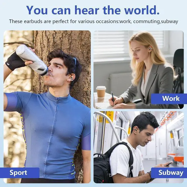 Open Ear Comfort: The open ear wireless headphones design of air conduction bluetooth headphones helps to achieve true painless and harmless. There is no need to put the earphones into the ear canal, so the ears will not feel sore even listening to music all day long. The ergonomic ear-fit design automatically adjusts the clamping force according to the shape of the user's ear to provide the appropriate clamping force.