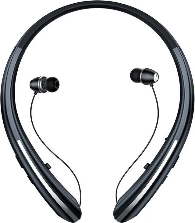 Bluetooth Running Neckband HeadphoneThis neckband earphones designed with curved neckband and made of extra durable & flexible materials, bringing you more comfortable wearing experience. IPX5 sweatproof technology protect the headphone from sweating damaged while youre running,jogging,hiking,climbing,bicycling,yoga,gym... indoor outdoor sports.