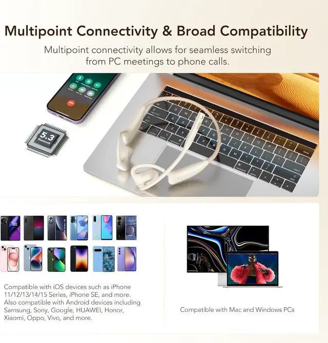 1Open Ear Design2Lightweight Silicon1Convenient Button Control2Multipoint Connectivity3Long Battery Life4Magnetic Charging What should I do if my headset fails to connect to my device suddenly?
