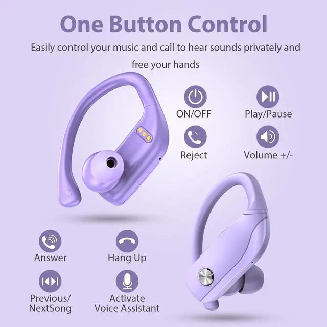 One Button Control and Auto Pairing: Compared with touch control, button control is easy so that you can obviate any operations and don't need to remember its instruction. When you pick wireless earphones out of the charging case, they'll automatically connect to the paired previous device. The range can reach up to 33ft away. When you put it back, the bluetooth earphones shut down and are recharging.