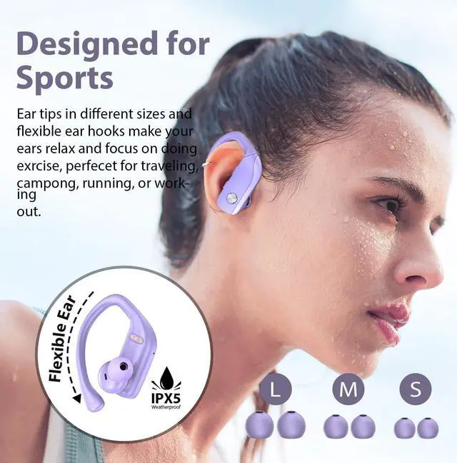 Designed for Sports: Sport headphones to keep you motivated, a secure fit that wont shift or fall out during long hours of training, and no wires to hold you back. Equipped with 3 pairs of ear caps and flexible earhooks, which can stay on your ears and get a suitable fitting. So that you will not feel tired and pain when wearing it for a long time. bluetooth earphones can fit for camping, running, or working out, even on a rainy day.