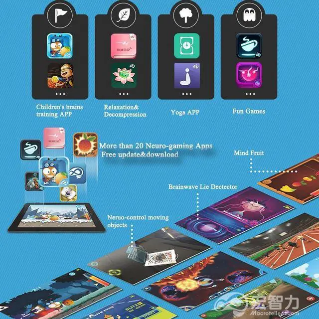 More than 20 Neuo-Gaming Apps,Free update&download on app store .Visualize brainwave on APPs.Scientifically track and evaluate the result of meditation