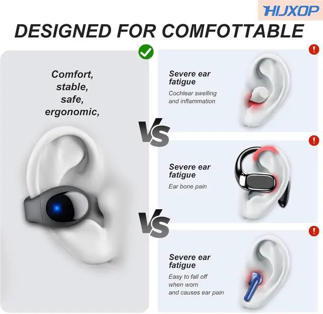 Open ear headphones offer personalized design and comfort, allowing sound to enter the ear naturally, reducing pressure on the eardrum and helping to protect the health of the ear, as well as providing greater safety by allowing you to hear your surroundings.