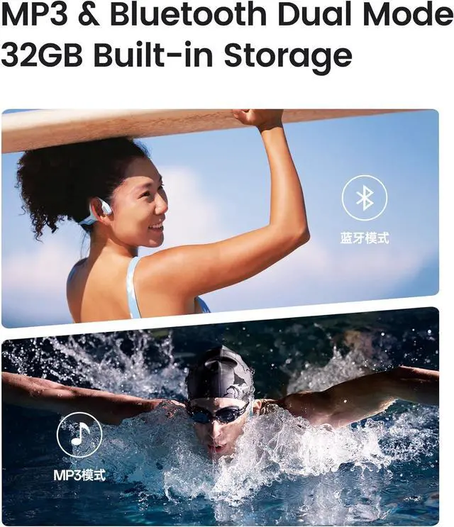 Bluetooth and MP3 Mode ( 32GB ): Dual-mode design lets you enjoy music anytime, anywhere. On land, stream music and podcasts on the go. Underwater, access up to 8,000 stored songs anytime. Important: Bluetooth does not work underwater, Use MP3 mode while swimming.