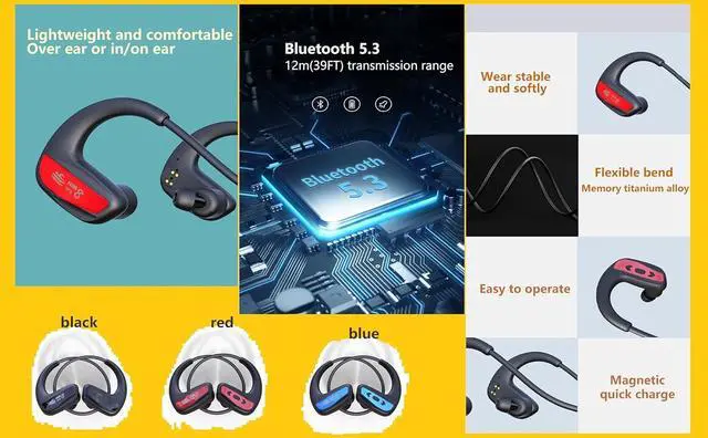 Swimming Headphones- High-performance waterproof technology, magnetic charging technology, built-in large-capacity battery, built-in MP3 player, built-in 32G memory, can pre-store more than 1,000 music songs.It allow you to enjoy a bud-free, comfortable listening experience all day long, in or out of the water.