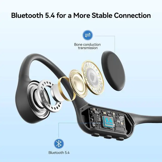 MP3 Mode & Bluetooth 5.4Bluetooth bone conduction headphones with 16GB of space can store 2000 songs, even without carrying a phone, sports fan can effortlessly enjoy music during workouts. Wireless bone conduction headphones with the latest Bluetooth 5.4 technology, more stable connection and lower latency in data transmission