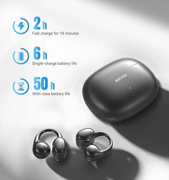 Unmatched Comfort and Secure Fit Say goodbye to ear pain with our upgraded C Shaped Bridge Design. King Lucky clip-on earbuds are meticulously crafted to fit all ear shapes comfortably and securely. Weighing just 5.2g, these ear clip earbuds provide a feather-light, pain-free experience, ideal for all-day wear. Lightweight and Fashionable Weighing only 4.7g, our clip on ear buds wireless Bluetooth earbuds are designed to be both fashionable and lightweight. Wear them all day without feeling weighed down. These wireless clip on headphones not only look great but also offer superior audio quality. Make a statement with your music. Crystal Clear Calls with Advanced Noise Cancelling Never miss a word with our state-of-the-art ENC noise cancelling technology. These wireless Bluetooth earbuds deliver crystal-clear calls even in windy environments. The dual sound wave directional transmission effectively eliminates sound leakage, making our open ear earbuds perfect for clear communication. Enjoy Long-lasting Playtime and Superior Connectivity With up to 50 hours of playtime using the charging case and 6 hours on a single charge, King Lucky ear clip earbuds are built for endurance. Featuring Bluetooth 5.4 technology, these wireless Bluetooth earbuds offer zero-latency, enhanced processing power, and efficient energy consumption, ensuring you stay connected longer. Experience Superior Sound with Open Ear Design Discover the perfect balance of safety and sound quality with King Lucky's clip-on earbuds. Our innovative open ear earbuds let you enjoy high-quality audio while staying aware of your surroundings. Perfect for outdoor activities, these wireless Bluetooth ear clip earbuds enhance your listening experience without compromising safety.