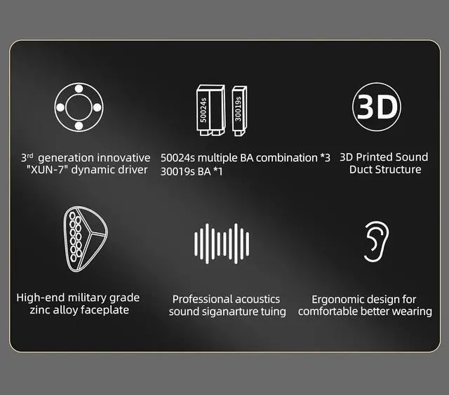 3rd generation innovative"XUN-7" dynamic driver,50024s multiple BA combination*330019s BA*1