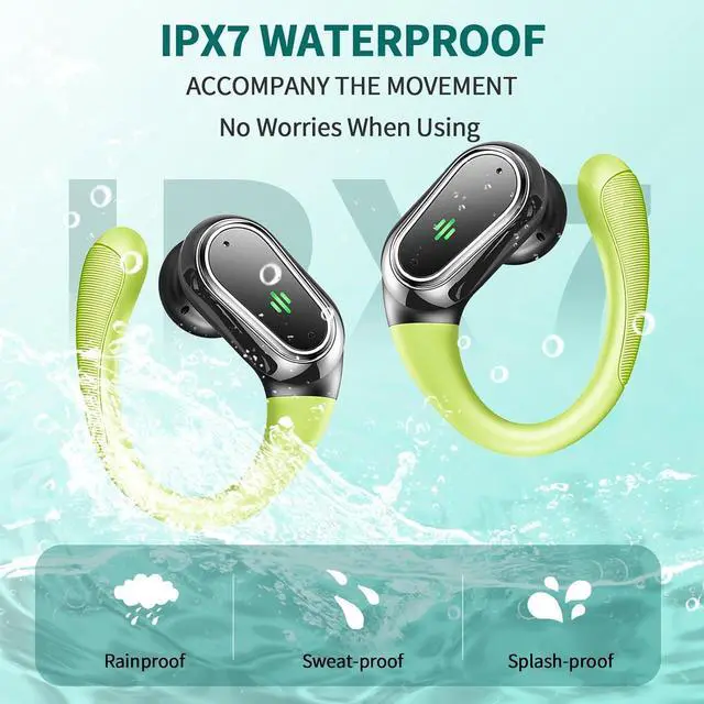 IP7 Waterproof and Sweatproof and Design for Sports: Designed with flexible and soft ear hooks, running headphones fit perfectly in your ears and stay focused on your exercise routine without worrying about falling out. To provide you with customized comfort, 3 multiple sizes of ear tips(S/M/L) are available. At the same time, the sports earbuds with earhooks have an IP7 waterproof rating, which can resist sweat, rain and minor water splashes during exercising, gym, cycling etc