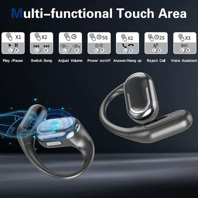 Comfortable Fit and Convenient Touch Controls: Featuring ergonomic ear hooks and a distinctive open-ear design, Byobyc wireless earbuds are ideal for prolonged use without causing discomfort. These earbuds allow for effortless music control, including playing, pausing, and skipping tracks, all via touch controls that respond to a simple tap.