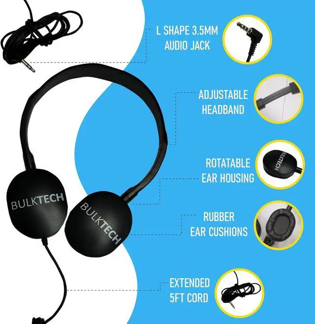 To add a touch of vibrancy, Bulktech provides their headphone sets in colorful variations with vibrant tones, departing from mundane and dull colors. Furthermore, all headphones are equipped with a universally compatible 3.5mm jack, enabling seamless connectivity to tablets, phones, PCs, Chromebooks, and other smart devices.
