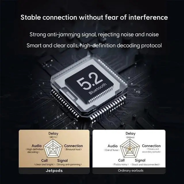 New Bluetooth 5.2 technology Bluetooth 5.2 technology connection is more stable than Bluetooth 5.0 , not stuck, no delay. Power consumption is only half of Bluetooth 5.0.