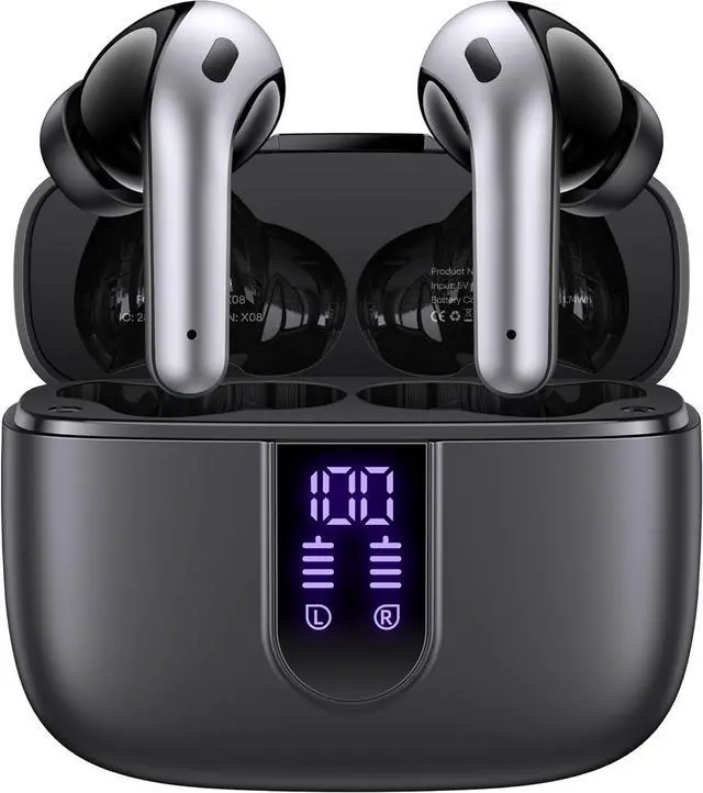 LED Power Display and 60H Playback: Dual digital LED power display outside of the case is to show the power level for charging case and earbuds. When charging for the case, the LED light will start to flash from 1 to 100. When you put earbuds into the case, then earbuds will start to be charged. 470mAh battery capacity charging case can provide extra 4 times full charging for both earbuds, each earbud can last 6H on single charging. So, you can enjoy 60H music time in total via using in turn