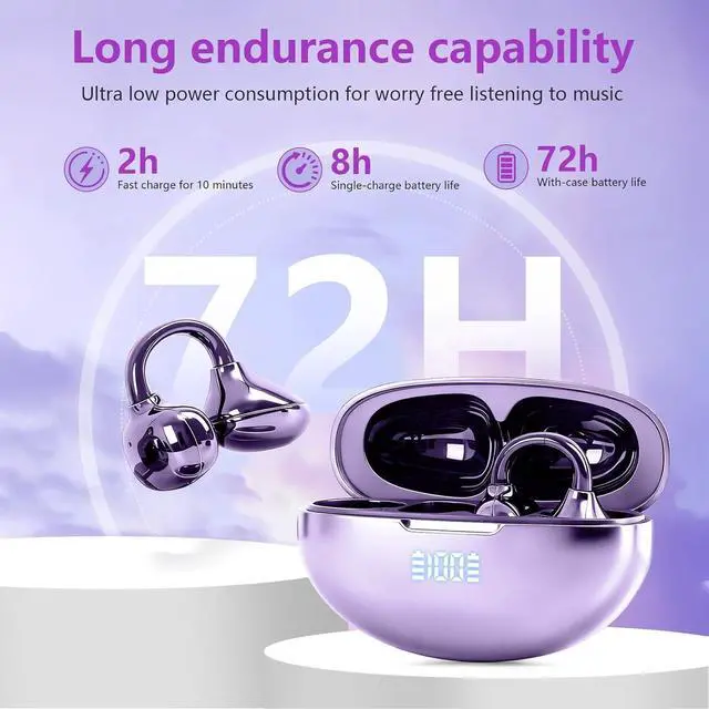 Open Ear Comfort: The open ear wireless headphones design of air conduction bluetooth headphones helps to achieve true painless and harmless. There is no need to put the earphones into the ear canal, so the ears will not feel sore even listening to music all day long. The ergonomic ear-fit design automatically adjusts the clamping force according to the shape of the user's ear to provide the appropriate clamping force.