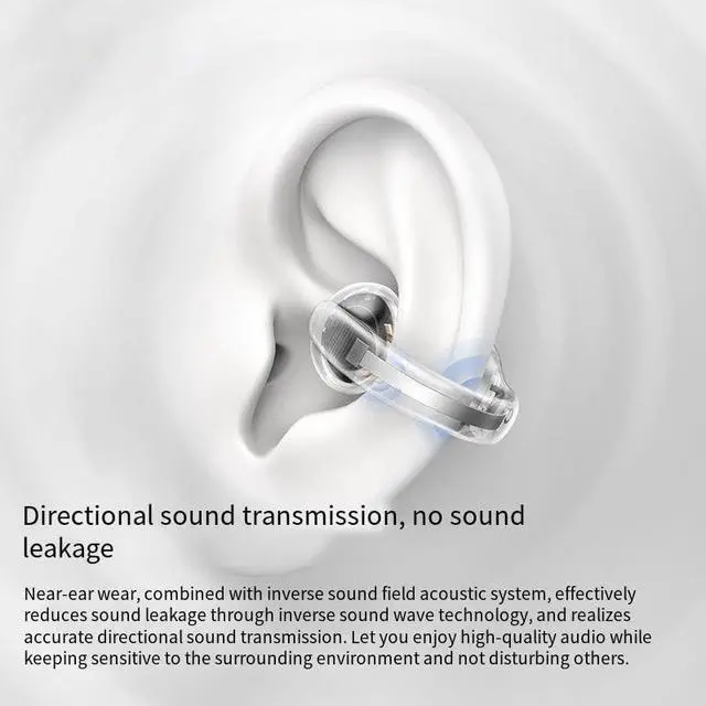 Clip-Ear Bone Conduction HeadphonesNewly developed clip-on ear design with new and stylish appearance and open-ear to make sure you can sense the sound of the external environment when you enjoy your music, film, sport. And you Improve personal safety and be able to respond politely to others.