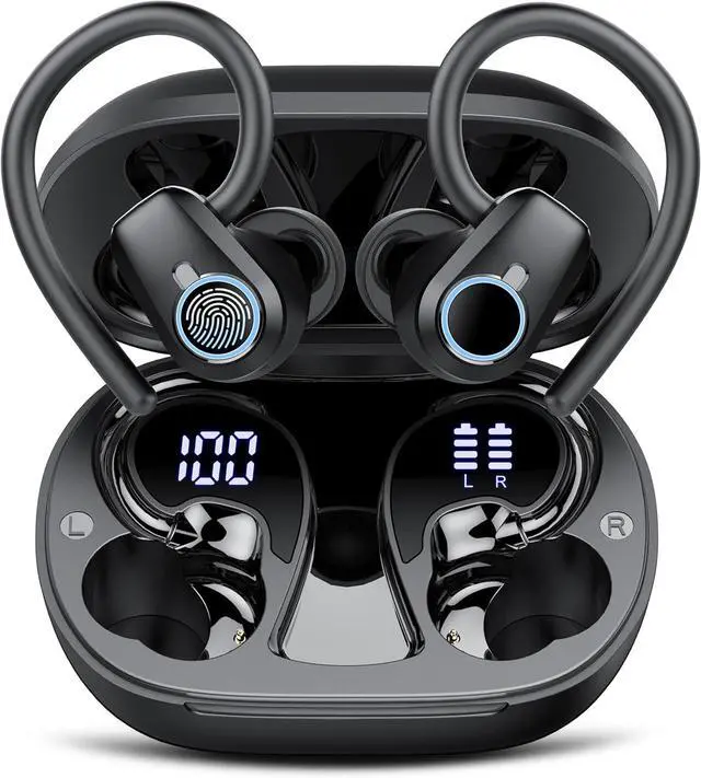 Ergonomic Design and IP7 Waterproof: The Bluetooth earbuds feature an ergonomic, streamlined design with three sizes of medical-grade silicone ear tips (S/M/L) that perfectly fit different ear canals. With a 30% more compact design than traditional sports headphones, its 45° TPU elastic ear hooks ensure a secure fit even during intense workouts. Utilizing ultra-light nano-materials, these running headphones achieve IPX7 waterproof rating, effectively protecting against sweat and rain splashes