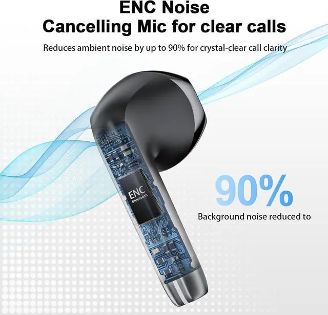 Hi-Fi Stereo and ENC Noise Cancelling: Our bluetooth ear buds are equipped with 13mm high-efficiency speakers, which make the bass more punchy and the midrange full and textured, so stereo sounds are crisp, clear, and balanced. Headphones wireless 4 built-in ENC noise cancelling mics work together to reject noises around you, keeping your voice sounding clear for every call.