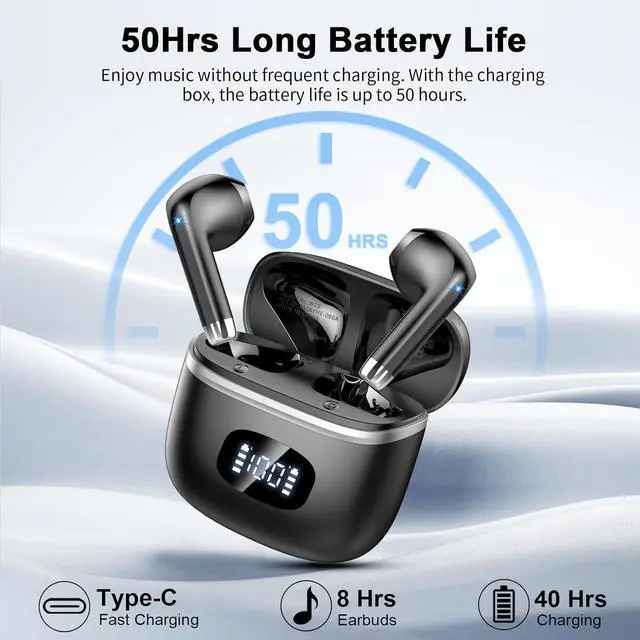 Ultra-Long Battery Life: The in ear headphones can be used for up to 8 hours at a time, and the total battery life can reach 58 hours with the charging case. Supports fast charging, charging for 10 minutes can be used for about 1 hour, meeting daily and travel needs.The wireless earbuds can be fully charged within an hour by using the USB-C cable.