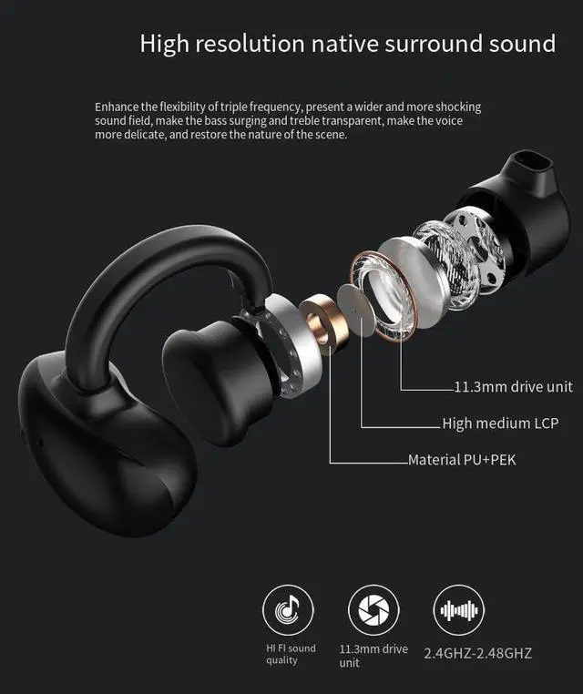 Lightweight and Stable Wearing: the sports headphones are lightweight and made of high quality soft silicone material to keep the exercise relaxing, the open ear design helps you to realize the real painless and harmless as the headphones do not need to be inserted into the ear canal.