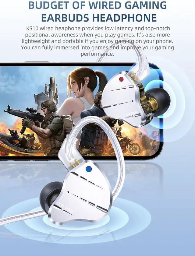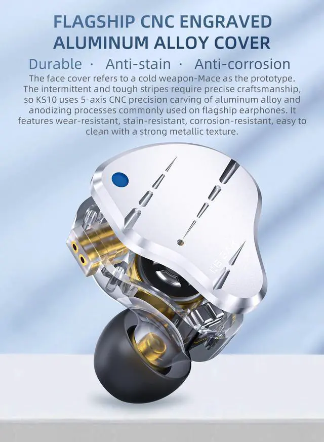 "Durable &Anti-stain &Anti-corrosion Kbear KS10 wired gaming headphones uses 5-axis CNC precision carving of aluminum alloy and anodizing processes commonly used on flagship earphones. The iem earbuds headphones features wear-resistant, stain-resistant, corrosion-resistant, easy to clean with a strong metallic texture.So kbear ks10 headphone is a good choose for daily headphones"