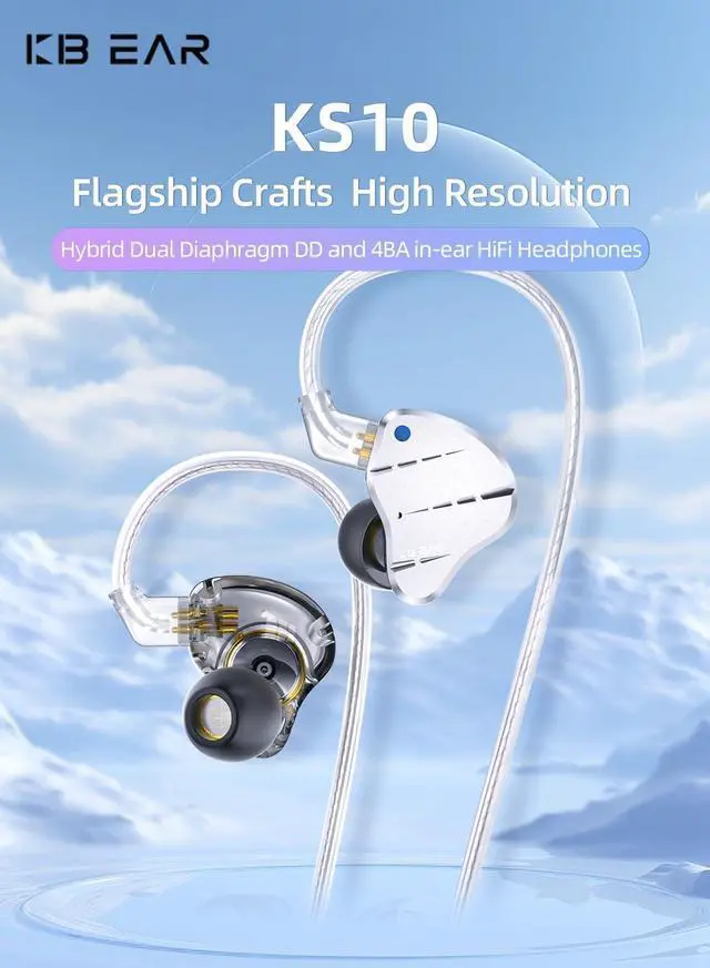 "Optimzed 1DD+4BA Acoustic Configuration The KBEAR KS10 bass wired earbuds headphones adopts KBEAR's classic ergonomic cavity and new acoustic configuration to achieve better mids and highs presentation and resolution. the in ear monitor headphones can accurately restore high-frequency and ultra high-frequency instruments and overtones, providing a richer listening experience."