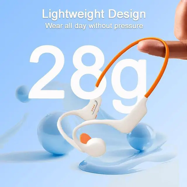 Open-ear Design: Bone conduction headphones,Innovative headphone design, with a lightweight surround frame and wireless open earmuffs: no earplug design, can avoid the discomfort of in-ear headphones, and the excellent fit between the bone conduction headphones bluetooth and the head and ears avoids the worry of falling off, and the ears will not feel tired after wearing for a long time.