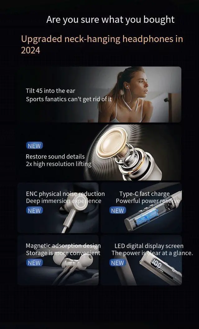 Excellent HIFI Stereo Deep Bass SoundThe wireless neckband earbuds features ENC function which can effectively suppress the background noise, reduce the ambient noise up to 35dB, hence enhance the sound clarity of phone call and music. 13mm driver deliver the complete sound transmission, help you enjoying the immersive deep bass auditory carnival.