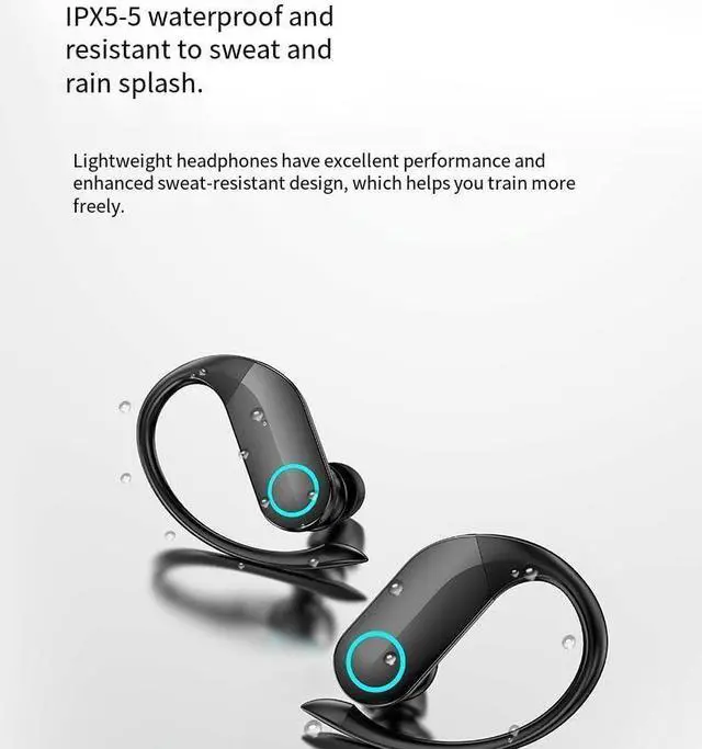 IPX5 Waterproof Wireless Earbuds: These wireless headphones are IPX5 waterproof, the nano-coating on the surface of the earbuds prevents water and sweat from seeping in, and can be used as sporty wireless headphones. You can listen to music while running, working, reading, sleeping, in meetings and more.