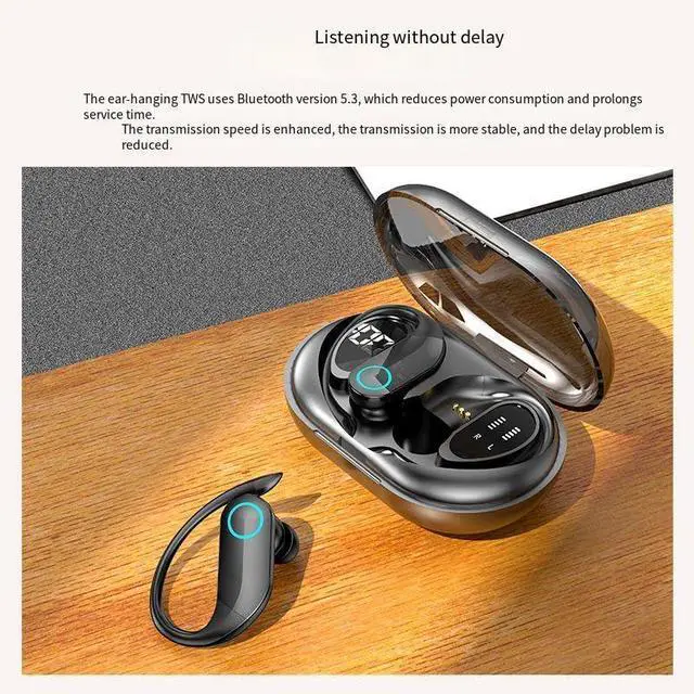 LED Power Display & Multi-functional ButtonThe charging case features an LED display that shows the remaining battery power, as well as the charging status of the bluetooth wireless earphones. An LED display keeps you informed about the battery reserves. The open ear wireless bluetooth headset features a multi-functional touch button that control of various functions. You can effortlessly play or pause music, skip tracks, answer or end phone calls, and activate voice assistant.