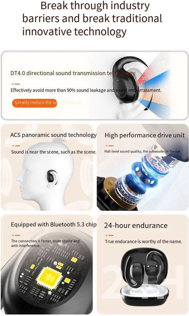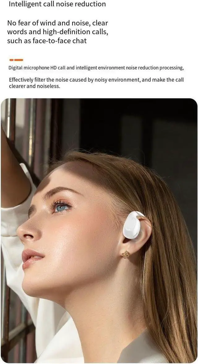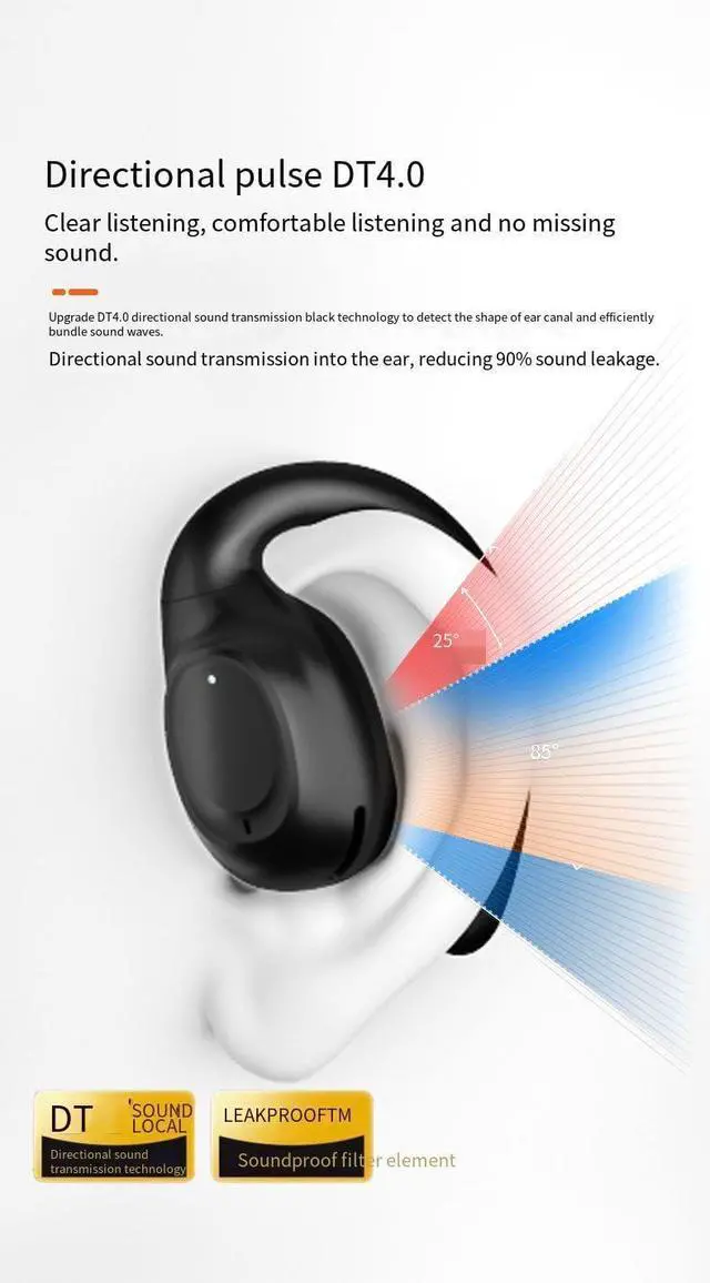 Open Ear EarbudsComfortable design,As the wearing style is different from traditional in-ear headphones, it does not need to be plugged into the ear canal, you can adjust the wearing style as you like when you wear it on your ears, which greatly reduces the pressure on your ears. No matter how much you shake your head or move, it won't fall off. You can also hear the sounds around you and enjoy the call experience clearly. Thoroughly protect your hearing.