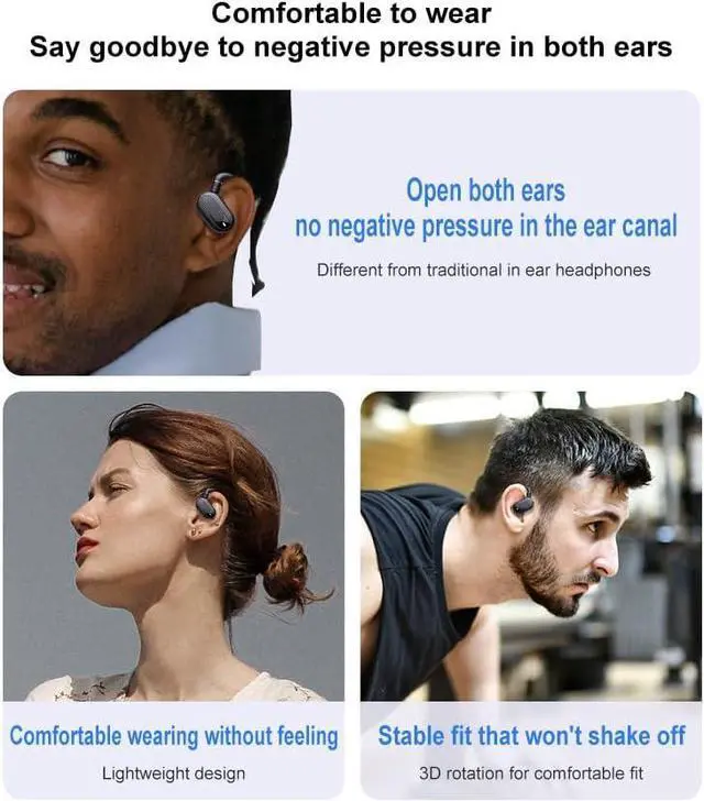 Secure and Comfortable FitSuper lightweight and ergonomic silicone earhooks ensuring a secure, comfortable fit achieves the perfect combination of comfort and stability. Long-term strenuous exercise will not fall off or put pressure on the ear. Feel comfortable wearing the open headphones, whether you are sports, daily travel, meeting or working from home.