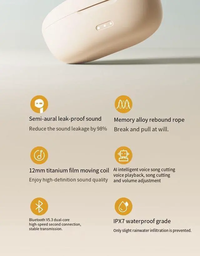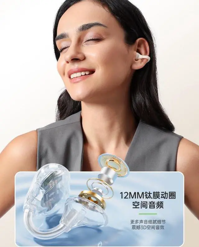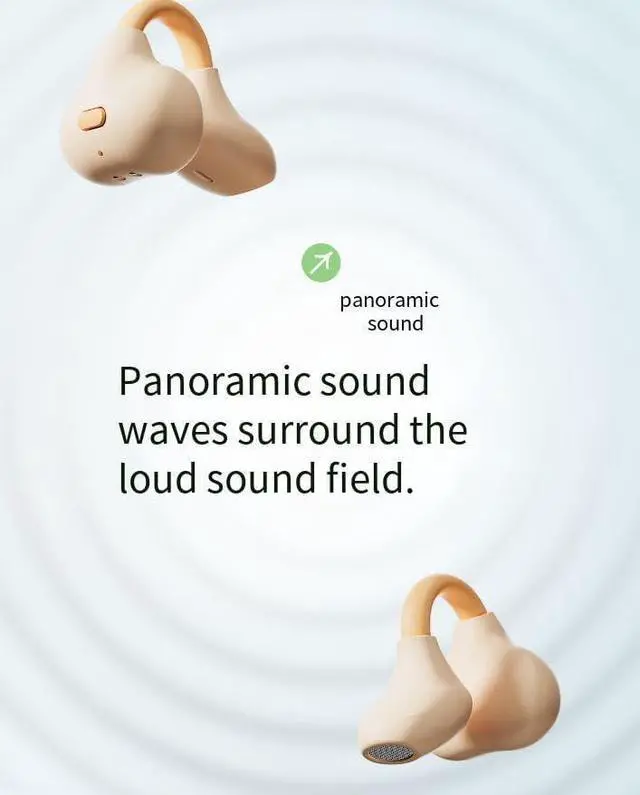 Open Ear Design HeadphonesFeaturing a new generation of true open-ear wireless earbuds design, these bluetooth headphones gently and securely fit your ears without entering your ear canal, reducing stress and the risk of hearing loss from extended wear. The audifonos inalambricos do not pinch the auricle, block the ear canal, or cause any pain or damage to your hearing.