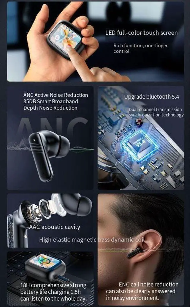 Intelligent Touch Screen In Ear Headphones: Touch color screen control, multi-function operation, unique smart charging case gives you direct access to all the key functions of the earbuds without a smartphone app.You don't need to use your phone to control the headset app functions, just touch the charging case screen for a truly seamless experience
