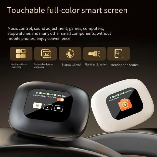 Intelligent Touch Screen In Ear Headphones: Touch color screen control, multi-function operation, unique smart charging case gives you direct access to all the key functions of the earbuds without a smartphone app.You don't need to use your phone to control the headset app functions, just touch the charging case screen for a truly seamless experience