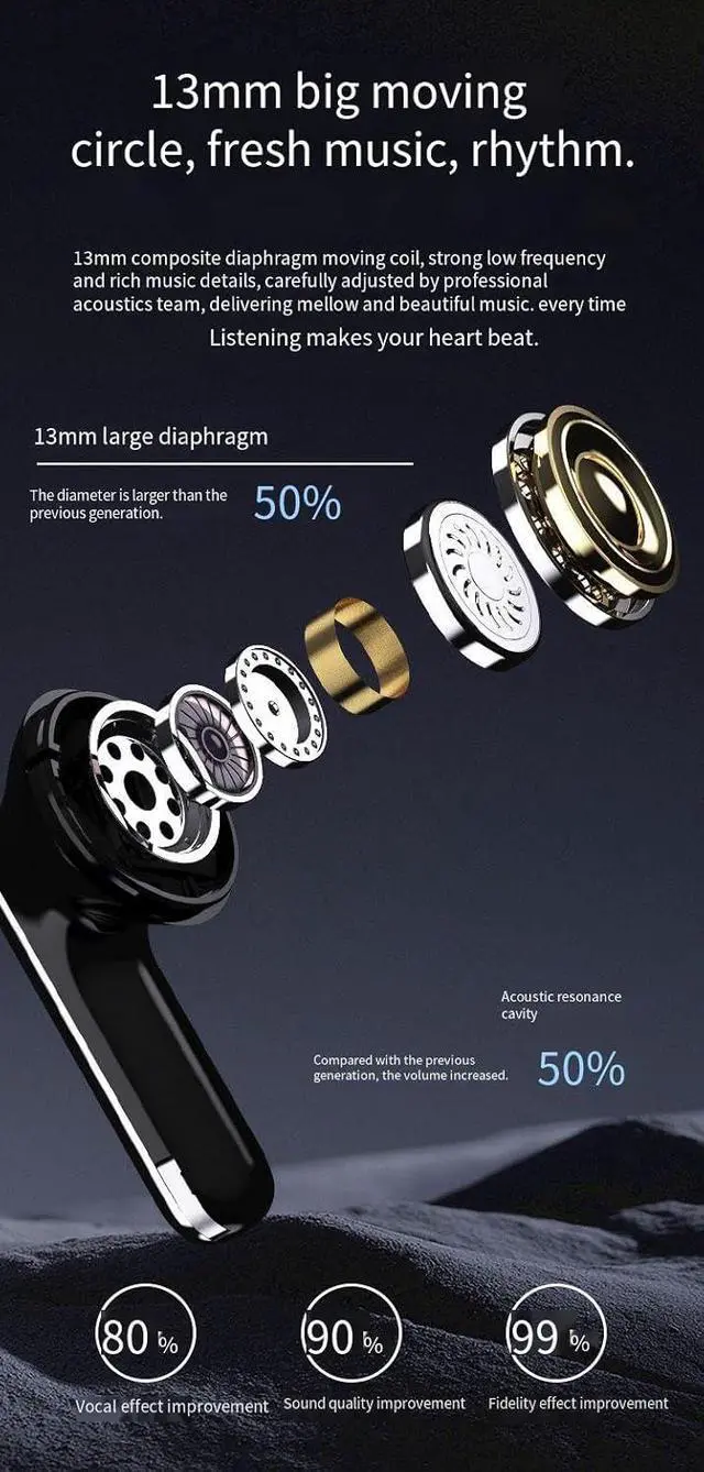 Lossless Audio Quality: In Ear bluetooth earbuds adopt the latest directional audio technology, which can automatically adjust the propagation angle of the sound beam to make the sound more focused, clear, and three-dimensional. In addition, the wireless ear buds retain the classic shape of a semi-in-ear headset, effectively avoiding sound leakage compared to the rounded shape of other earphones. Bring you an immersive music experience