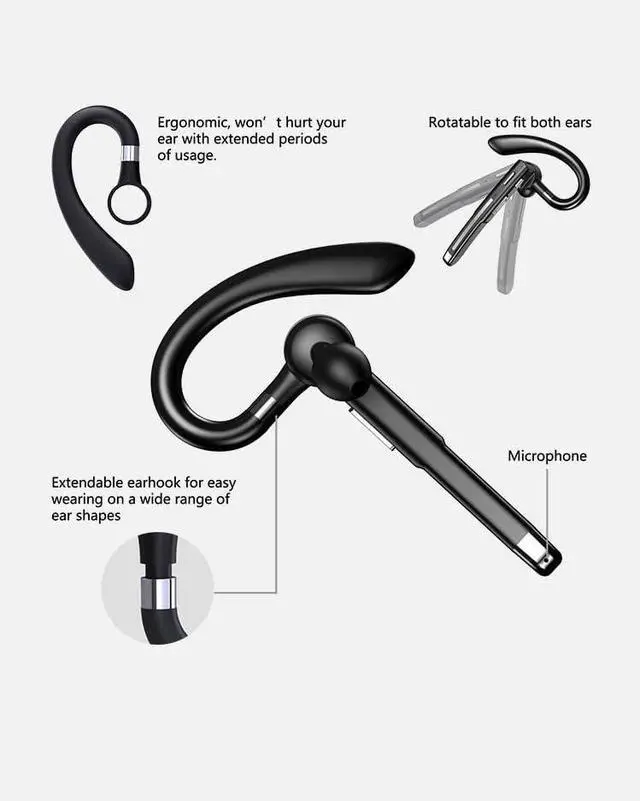 Long Distance Wireless Range: The single ear wireless headphones can connect two devices at the same time, widely compatible with ios Android cellphone/ computer/ pc and bluetooth-enabled devices.