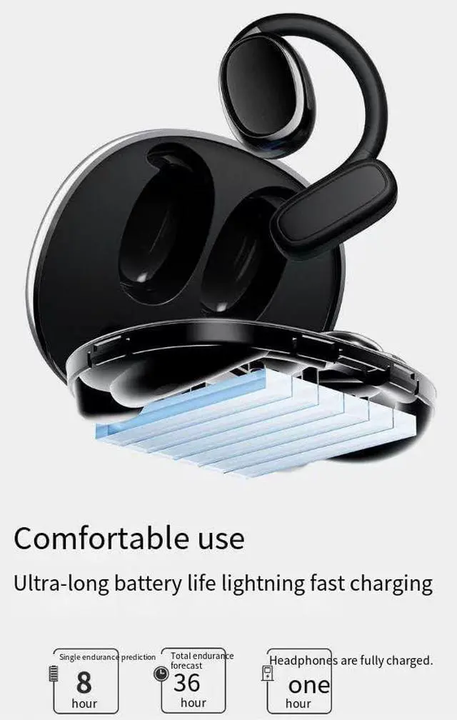 Open Earbuds with EarhooksComfortable design,As the wearing style is different from traditional in-ear headphones, it does not need to be plugged into the ear canal, you can adjust the wearing style as you like when you wear it on your ears, which greatly reduces the pressure on your ears. No matter how much you shake your head or move, it won't fall off. You can also hear the sounds around you and enjoy the call experience clearly. Thoroughly protect your hearing