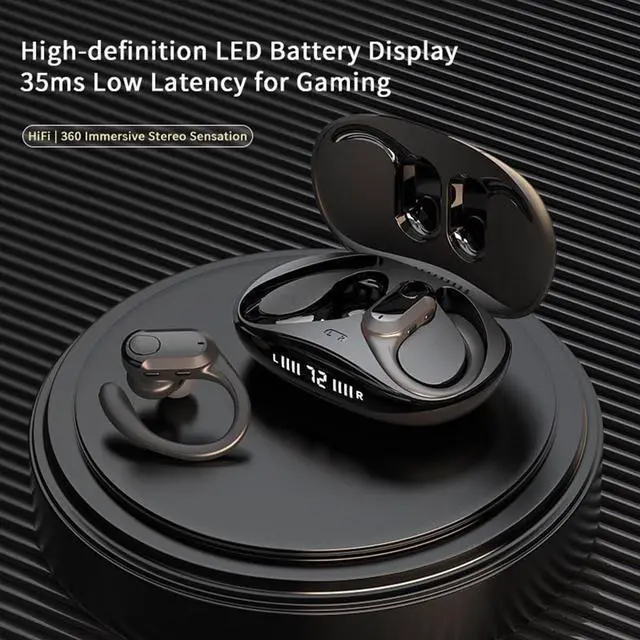 Open Ear Design Headphones: Featuring a new generation of true open-ear wireless earbuds design, these bluetooth headphones gently and securely fit your ears without entering your ear canal, reducing stress and the risk of hearing loss from extended wear. The audifonos inalambricos do not pinch the auricle, block the ear canal, or cause any pain or damage to your hearing.