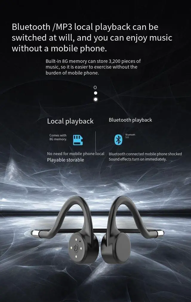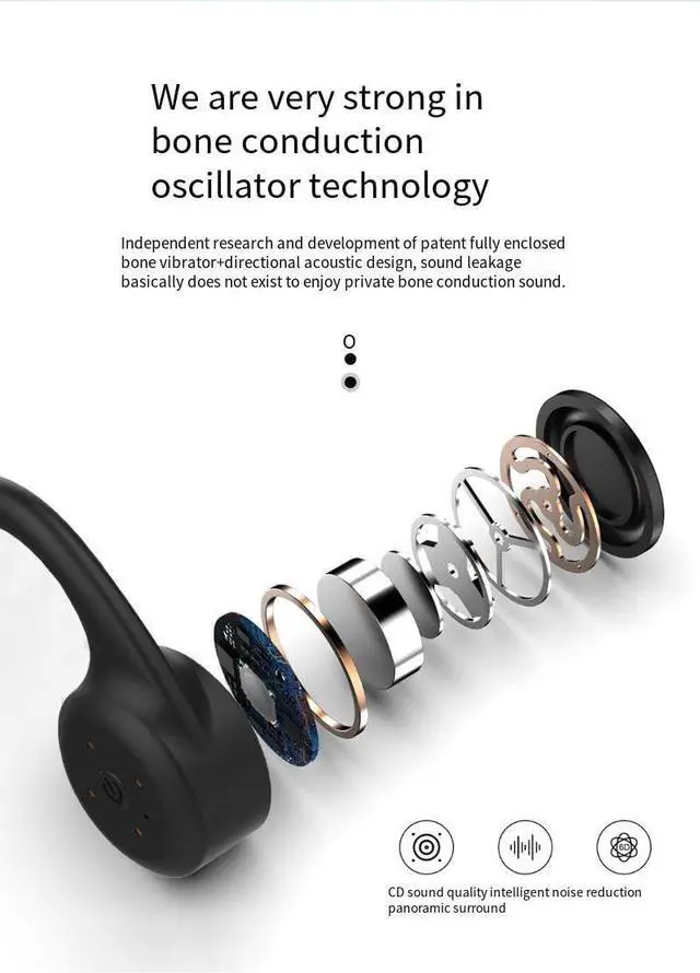 Open-ear Headphones: With open ear design,bone conduction headphones use vibration to transmit sound through the cheekbone to the interior for balanced and clear audio,optimal volume and rich bass,allowing you to enjoy music while still sensing the sound around you.Such design not only improves safety but solve the problem of pain caused by traditional hard plastic wireless headphones to the ear canal