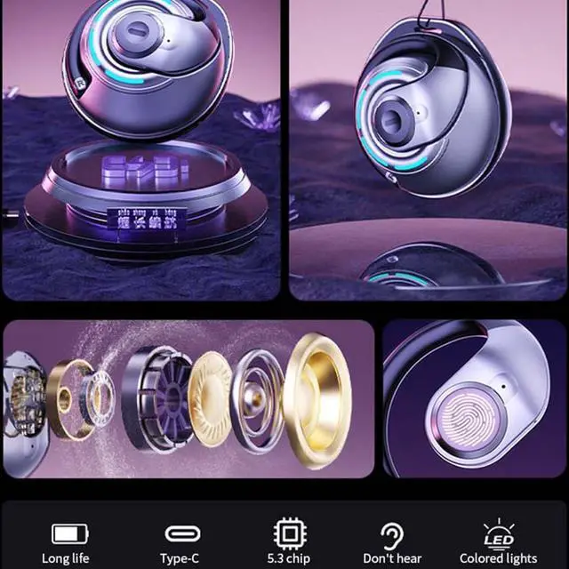 Open Ear Design Headphones: Featuring a new generation of true open-ear wireless earbuds design, these bluetooth headphones gently and securely fit your ears without entering your ear canal, reducing stress and the risk of hearing loss from extended wear. The audifonos inalambricos do not pinch the auricle, block the ear canal, or cause any pain or damage to your hearing.
