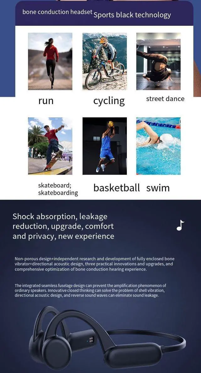 Bone Conduction Technique: The wireless bluetooth headset adopts the new open-ear bone conduction technology, which allows you to hear the sound of the surrounding environment while wearing the headset to listen to music, which ensures the safety and avoids the damage caused by the in-ear headset to the hearing.