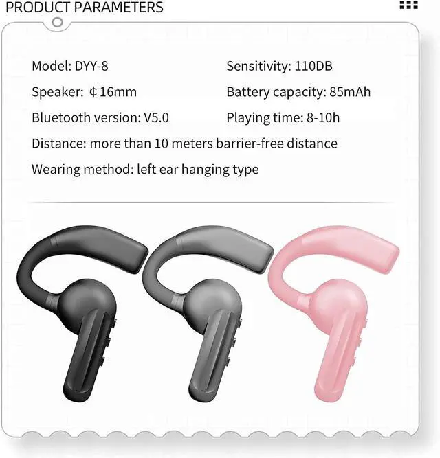 Bluetooth 5.0 headset: This earpiece features automatic pairing when it is activated, faster transmission, wider coverage, high-quality audio source, 10 meters wireless distance.