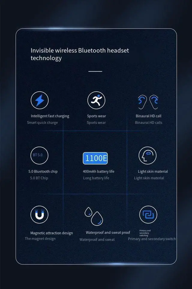 IPX5 Waterproof Wireless Earbuds: These wireless headphones are IPX5 waterproof, the nano-coating on the surface of the earbuds prevents water and sweat from seeping in, and can be used as sporty wireless headphones. You can listen to music while running, working, reading, sleeping, in meetings and more