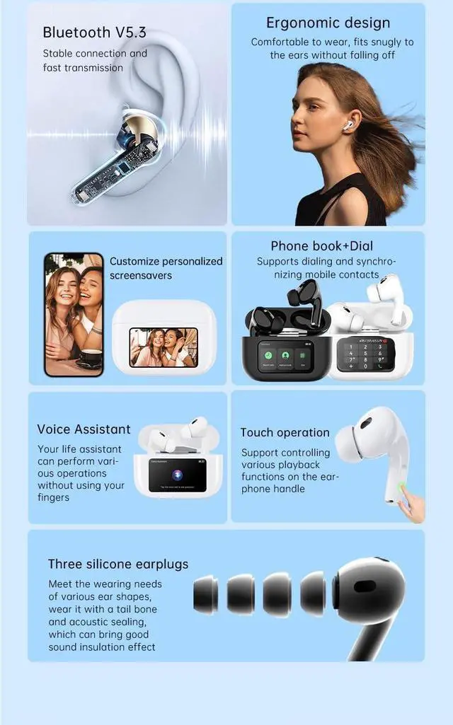 Smart Touch Control Bluetooth Headphones: Sensitive touch control panels on the left and right earbuds allow you to flexibly control music playback, answer or reject incoming calls, adjust volume, switch between music and activate the voice assistant.