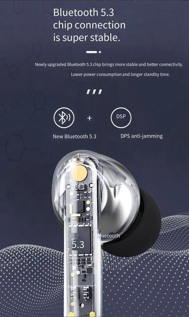 Easy Pairing Bluetooth 5.3 Wireless Earphones: Latest Bluetooth version 5.3 has more stable transmission, lower power consumption and longer range with fewer dropouts than Bluetooth 5.1. Once paired for the first time, the two wireless earbuds will automatically