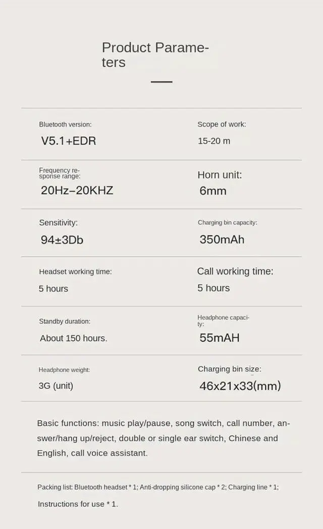 Long battery life: Our wireless Bluetooth earphones use advanced battery technology to provide up to 30 hours of music playback time, allowing you to enjoy clear and enjoyable music without frequent charging during long-term use.