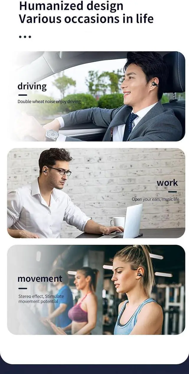 Keep in Contact with the Outside WorldListening to music without blocking your ears allows you to understand the surrounding situation while listening to music. You can hear incoming cars or ringtones when you are running, cycling or driving, effectively avoiding some dangerous situations
