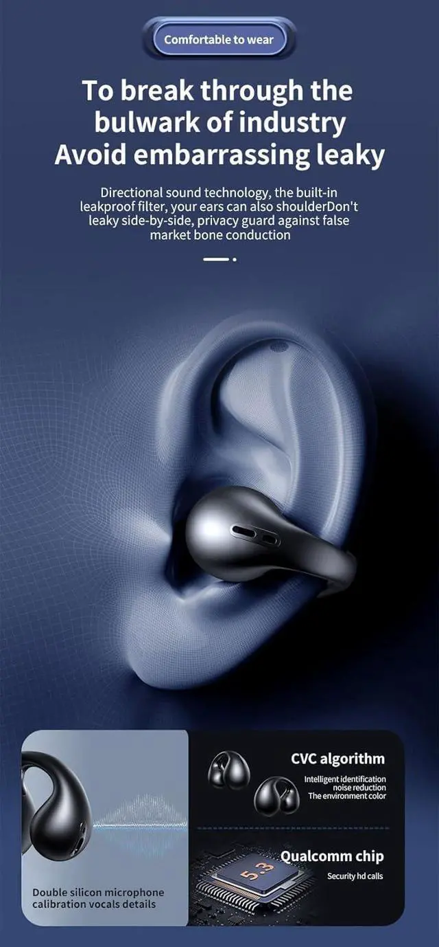 Secure and Comfortable FitSuper lightweight and ergonomic silicone earhooks ensuring a secure, comfortable fit achieves the perfect combination of comfort and stability. Long-term strenuous exercise will not fall off or put pressure on the ear. Feel comfortable wearing the open headphones, whether you are sports, daily travel, meeting or working from home
