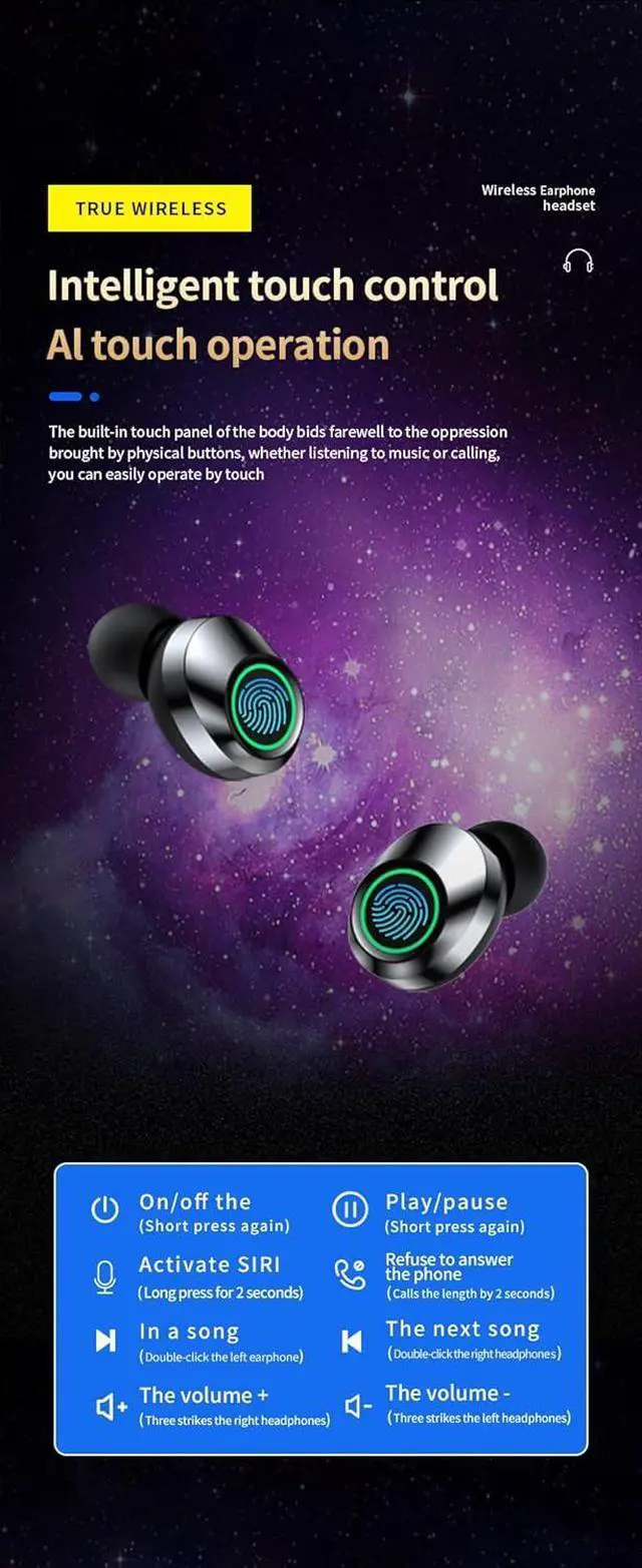 Touch Control & Wide Compatibility: Built-in sensitive touch control key on the Bluetooth earbuds wireless lets you easily manage many functions. Change songs or adjust volume, or make phone call, all operations at your fingertips, hassle-free your hand without taking out devices. Compared with physical button, wireless earphone largely reduces the pressure to your ears. Compatible with most Bluetooth-enabled devices including iOS or Android smartphones, TV, tablet, Laptop, or smart watch etc